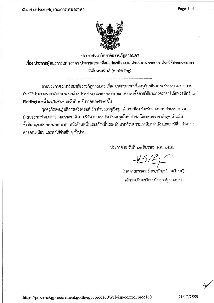 ประกาศผู้ชนะการเสนอราคา ประกวดราคาซื้อครุภัณฑ์คอมพิวเตอร์ ด้วยวิธีประกวดราคาอิเล็กทรอนิกส์ (e-bidding) เลขที่ 28/2560 เผยเเพร่เมื่อ 21 ธันวาคม 255927 มีนาคม 2017 โดย งานพัสดุ 2347 เข้าชม ประกาศผู้ชนะการเสนอราคา ประกวดราคาซื้อครุภัณฑ์คอมพิวเตอร์ ด้วยวิธีประกวดราคาอิเล็กทรอนิกส์ (e-bidding) เลขที่ 28/2560 คือ ชุดครุภัณฑ์ปฏิบัติการเครื่องยนต์เล็ก ตำบลธาตุเชิงชุม อำเภอเมือง จังหวัดสกลนคร 1 ชุด คลิกดูรายละเอียด FacebookFacebookXXLINELine